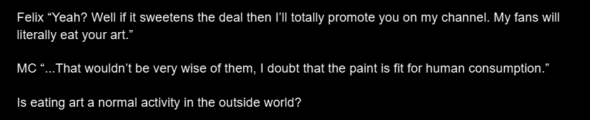 The amount of screenshots I have saved that are just FELIX PLS is unreal...